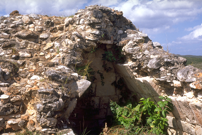 Remains of collapsed vaulted room on upper level.       Jan. 2002