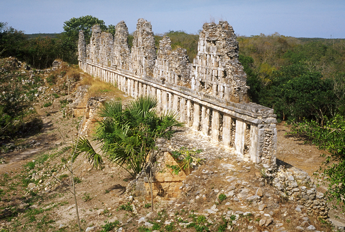 Looking northwest along south face of the House of the Pigeons; the Dovecote Roofcomb miraculously preserved over thirteen centuries. Jan. 2001