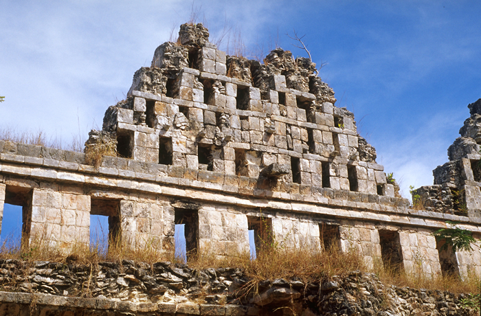 4th gable-shaped section, west-to-east; showing projecting tenon which presumably originally held stucco figure. Jan. 2001