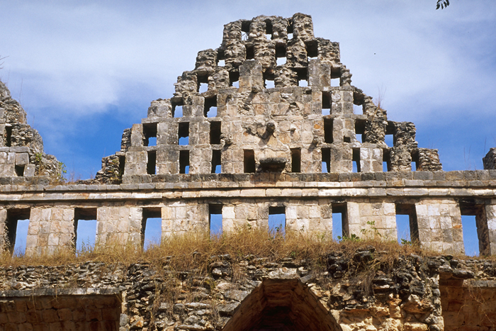 5th gable-shaped section, west-to-east; showing projecting tenon which presumably originally held stucco figure. Jan. 2001