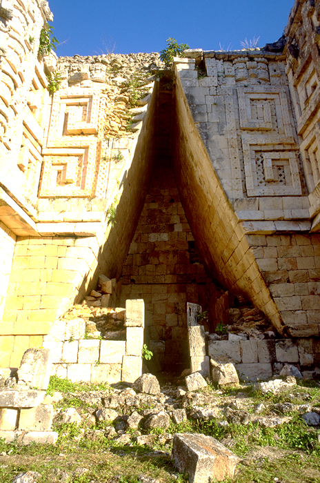Rear of south vaulted passageway, showing transverse wall added halfway back and later forward wall with doorway added later to form a room.