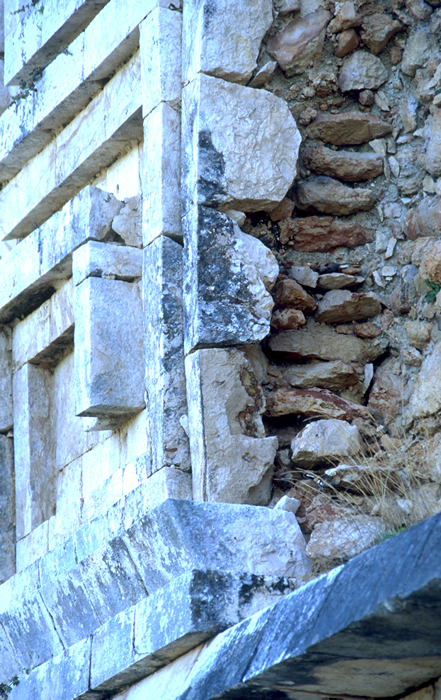 Showing concrete rubble fill between exterior frieze and concrete-rubble of inner vault mass, which tapers slightly inward as it rises.
