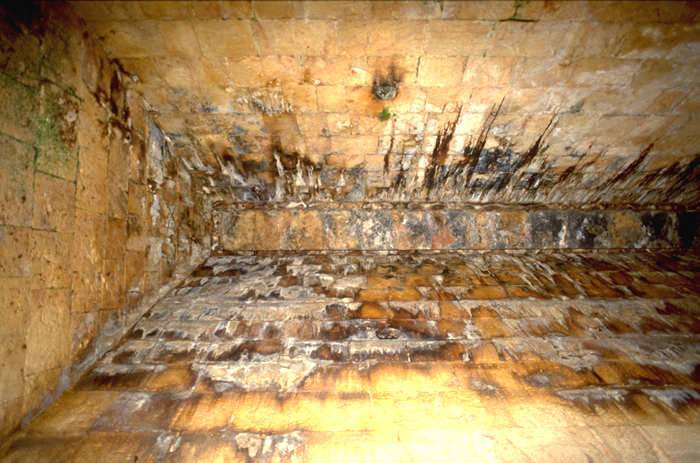 Showing well crafted structure at top of vault, with large capping stones spanning top of vault Jan. 2003 (24mm lens, flash)