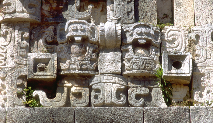 at extreme right; each rectangular mask formed of stones,