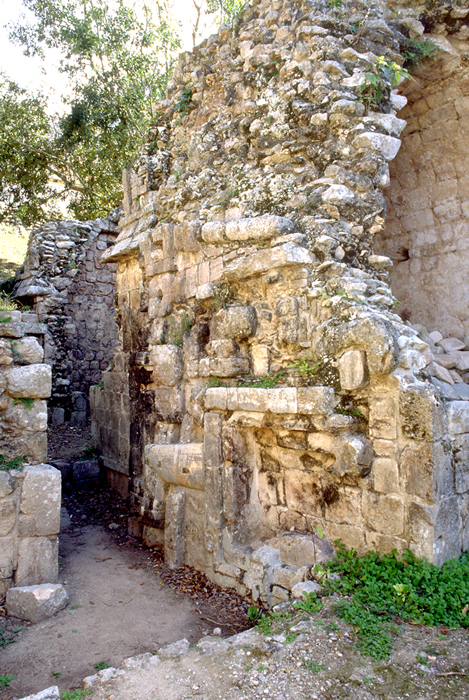 Detail of area in photo at left; showing left section of partially surviving zoomorphic doorway. Jan. 2003 (24mm lens)