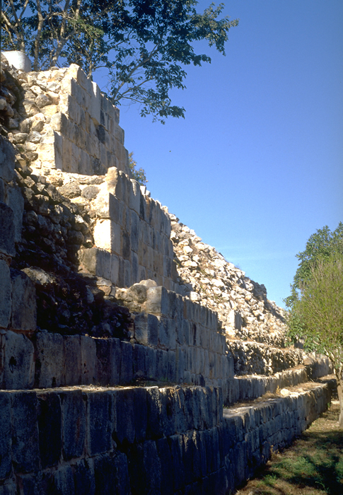 North side of Great Platform, restored with some facings to indicate position of set-back walls. Jan. 2001