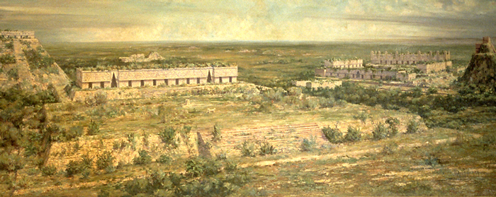 Detail of painting at left; showing Great Platform with Terrace on top and Governor's Palace. 1915 (photo May 2000)