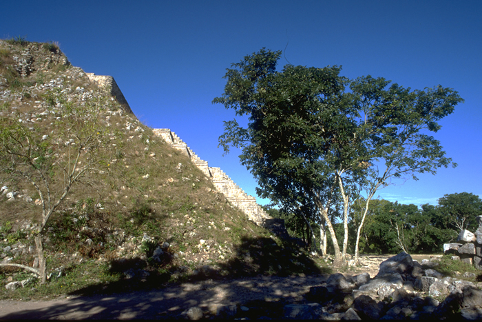 Profile of restored grand staircase, with unrestored pyramid mound.