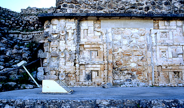 Left (northeast) corner of Macaw Temple, collapsed section behind and to left, light fixture for sound and light program.
