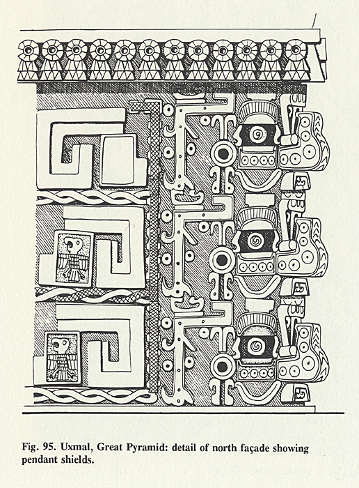 "Uxmal, Great Pyramid: detail of north facade showing pendant shields."