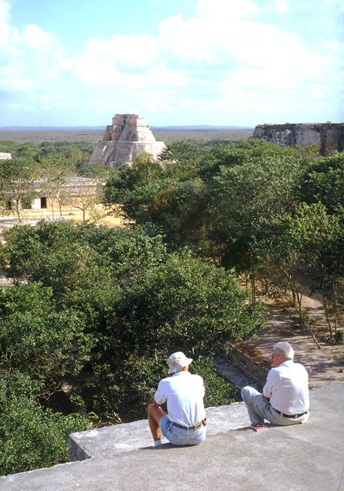 View northeast from near top, showing that height is similar to that of the Pyramid of the Magician. Jan. 2001