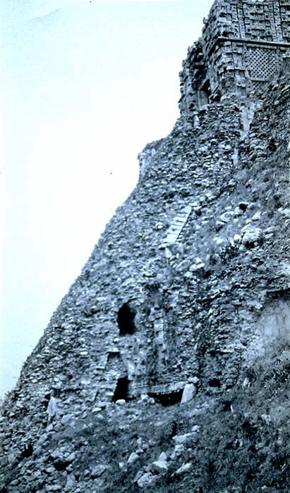 of Temple I and passages behind grand staircase at bottom. Scanned from slide taken of original photograph by M. H. Saville; reproduced Courtesy of The Division of Anthropology, American Museum of Natural History. |