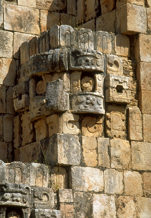 Mosaic mask immediately above mask at left, showing that even the eyelids are similar in these masks.