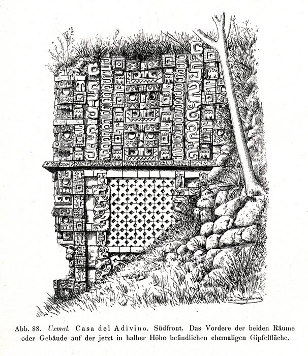 Scanned from Eduard Seler, Die Ruinen von Uxmal, 1917; drawing by Wilhelm von Steinen, based on sketches by Teobert Maler and Caecilie