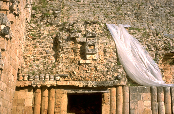 Detail of area in photo at left; showing rare intact portions of original facade (cf. 1917 drawing at right).