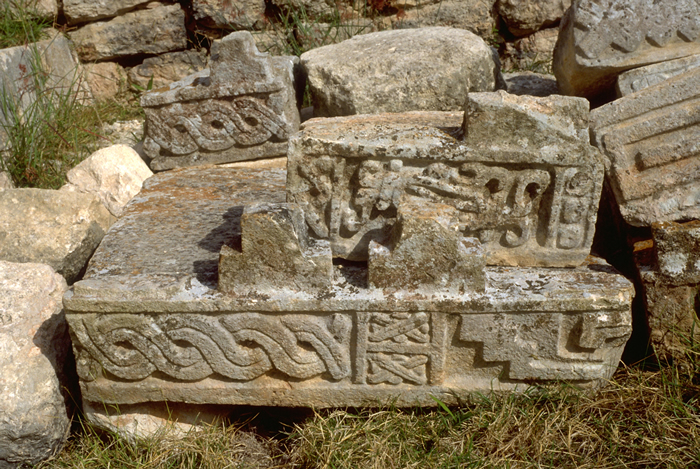 Fallen architrave stones, various patterns.
