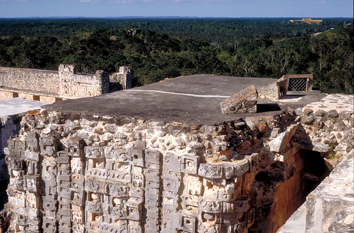 Surviving top of Temple IV, protected with concrete covering, son et lumière fixtures installed. Jan. 2003 (24mm lens)