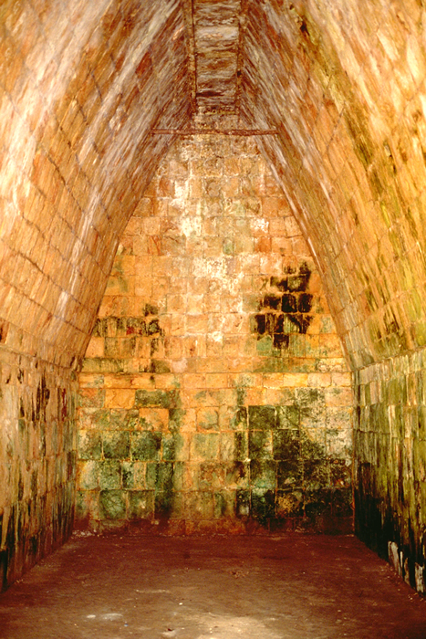 One of the widest interior room constructed by the Maya, slightly wider than the central room of the Governor's Palace, which however is taller. Jan. 2002 (flash)