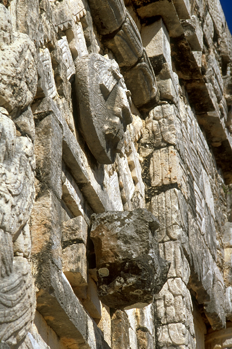 Angle view of same detail of frieze; showing the complex 3-dimensional form of this area, and that the medallion is shaped like a turtle's carapace.