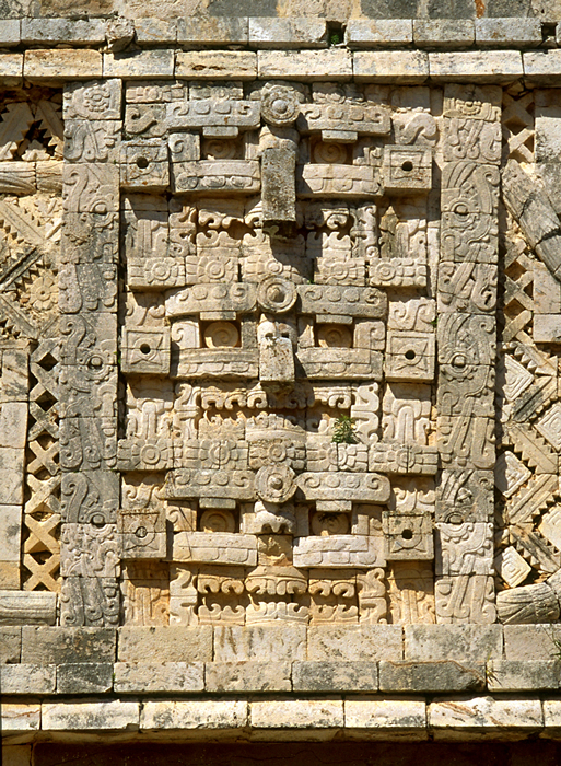 Detail of same mask stack, largely intact and complete except for broken snouts; showing high quality fitting of mosaic stones. Jan. 2001