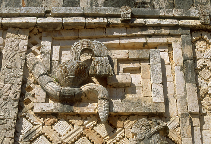 Detail of the rattle at the end of the tail of the upper serpent; with tuft of feathers above (cf. page 3 for the opposite ends of the two snakes).