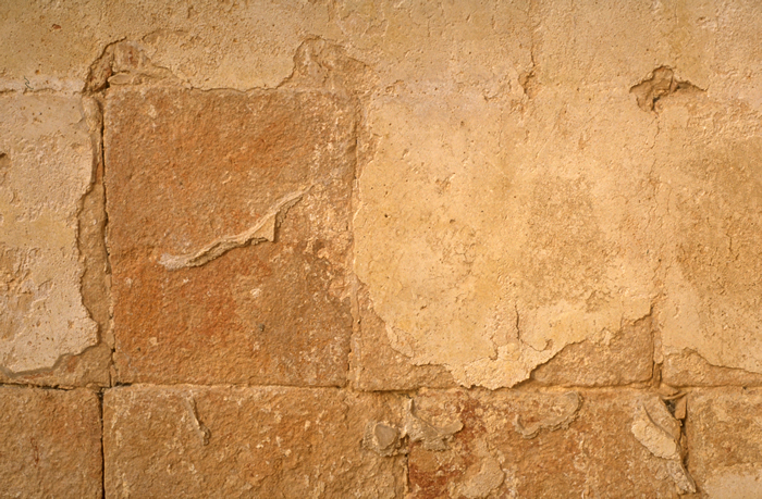 Detail of wall in photos at left, showing surviving plaster, unusual because of exposure.