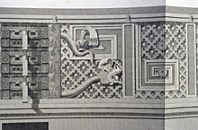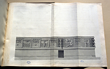 All the images of Uxmal (there are no images of Kabah, Sayil, or Labná) in the first edition of Frédéric de Waldeck, Voyage pittoresque et archéologique dan la province d’Yucatan (Amérique Centrale), pendant les années 1834 et 1836 (Paris: Bellizard Dufour et Co; Londres, J. et W. Boone, Bossages Barthes et Lowell, 1838). Reproduced from 35mm slides I have taken from a copy in the University of Cincinnati Library, with appreciation. On this web site, the quoted captions are literal translations of the French captions. Because the paper was deliberately not pressed flat, the images on this web site show the 3 foldout pages slightly creased and irregular.