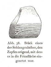 "Fig. 38. Piece of one of the serpent bodies showing the peg with which