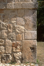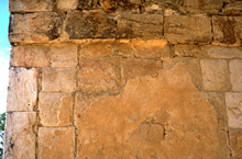 Inside of arch-like form, reconstructed (north side). The wide capstones lying on top of the