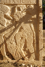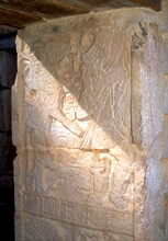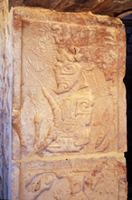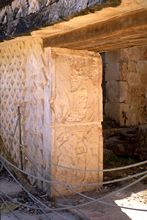 shown in photos above; no other Puuc sculpture includes elaborate background scrollwork seen in these 2 doorjambs.
