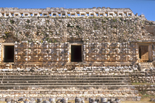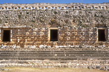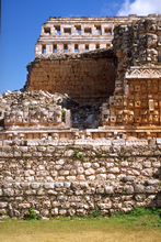 "Kabáh, Structure 2C6 (Codz-Poop), west facade: detail of masks."