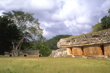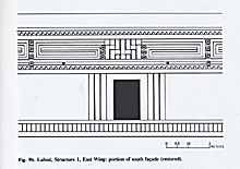 "Labná, Structure 1, East Wing; portion of south facade (restored)."