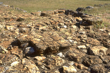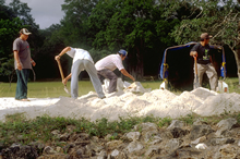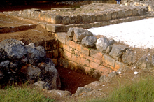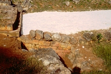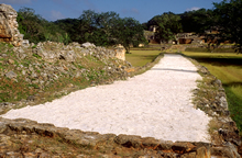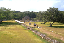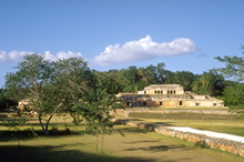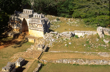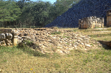 down into central plaza, restored 1991-1992; structures slightly behind to right restored 1993-1994.