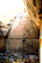 Concrete-rubble core exposed by fallen surface stones; detail of vault in other room.