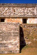 A 2nd staircase on the same north side of the Great Platform (farther west than one in photos at left). It previously led to the House of the Turtles; the staircase now cleared but not restored for tourists.