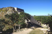 Facade and staircase of East Building. Complex levels and divisions of staircase suggests ceremonial staging.