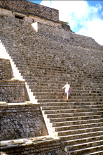 The huge grand staircase, with 2 narrow landings toward top, leading to the Macaws Temple.