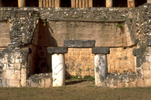 Scanned from George F. Andrews, Pyramids and Palace, Monsters and Masks; Vol. 1, Architecture of the Puuc Regions and the Northern Plains Area, 1995, p.148. Reproduced with permission of Labyrinthos, publishers. |