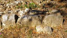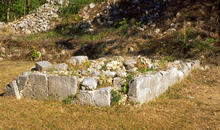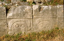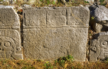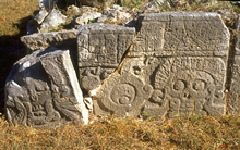 Skull platform farthest west in courtyard, showing west side and short south end;