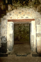 In this room at the southwest corner of the Palace in 1841 Stephens and Catherwood found a 10 foot long wooden lintel, carved with hieroglyphs. In 1843 they took it to New York for display. Two years later it was destroyed in a fire.