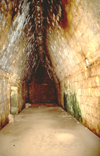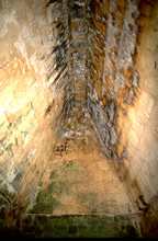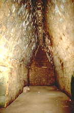 Showing well crafted structure at top of vault, with large capping stones spanning top of vault.