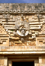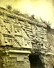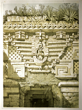 Scanned from Eduard Seler Die Ruinen von Uxmal, 1917 (fig. 120a); print based on a photo of a plaster cast in the Peabody Museum. |