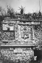 Photograph mounted in Vol.1 of Désiré Charnay, Cités et Ruines Américaines, 1862; taken by Charnay 1859-60. This image scanned from a 35mm slide taken from a copy in the AMNH (RF-106-D). Reproduced Courtesy of The Libary, Special Collections, American Museum of Natural History. |