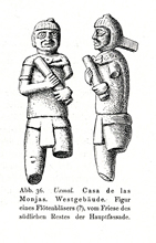1917. "Fig. 36. Uxmal. House of the Nuns. West building. Figure of a flute blower (?), from the frieze of the southern remnants of the main facade."