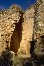 Closer view of photo at left; showing partially surviving end room, partially remaining vaul, and door from front room.