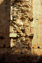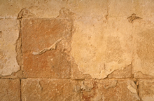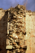 Detail of wall in photos at left, showing surviving plaster, unusual because of exposure.