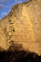 End view of lower portion of cross-wall in photo at far left; showing additional depressions in walls.