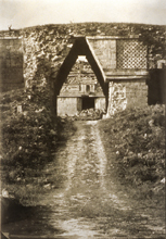Uxmal: Nunnery Quadrangle; looking through archway entrance in South Building to inner courtyard and North Building.