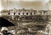 Nunnery, North Building, looking across courtyard to front facade; pillars of ruined Temple Y at base of North Building.