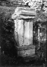 Nunnery Quadrangle; pillar, base, and capital of collapsed building at base of North Building, seen in photo above.